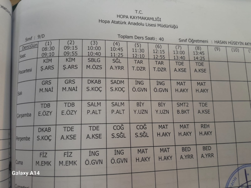 ders programı