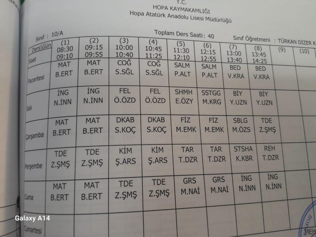 Haftalık Ders Programlarımız